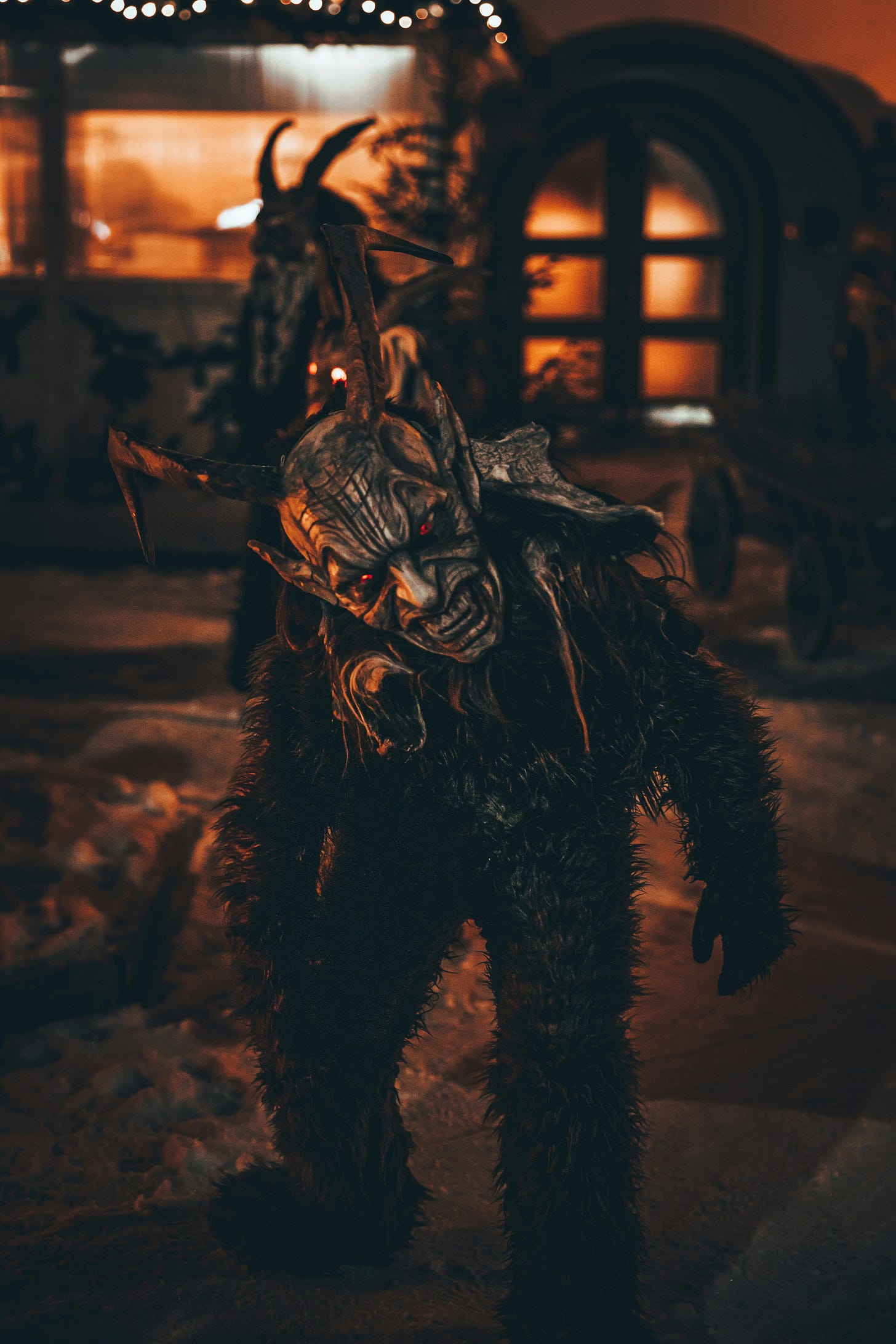 Krampus is Santa’s yin and is usually depicted with horns and a demonic facial expression.